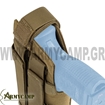 Διπλή θήκη γεμιστήρων πιστολιού 9mm και 0.45 με λάστιχο στο πλάϊ και καπάκι προστασίας. Γίνεται και ανοιχτή μιας και το καπάκι αφαιρείται εύκολα .Ιδανική για το πεδίο και το σκοπευτήριο .Ιδανική θήκη και για σουγιά - πολυεργαλείο