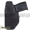 APN is an IWB and OWB holster designed for appendix carry or standard I/OWB carry on your waist. The holster is offered with an adjustment screw for accurate retention pressure and personal preference; a belt clip/J hook that allows five cant positions with a simple turn clockwise/counterclockwise; a sweat guard to buffer between the firearm and your body, to assist with better purchase of the firearm and to offer a degree of ventilation, without allowing sweat to pass to the slide of your firearm (the sweat guard is detachable and you may use the holster without it); a concealment wing (available for right-handed only) to push the grip of your firearm towards your body for less 'printing' (also removable); a rigid paddle that enables to carry the holster as OWB; and finally, the holster is ambidextrous and may be switched to left-hand use without any tools required. The APN holster is highly concealable, very lightweight, completely washable, ventilated, highly durable, it is contoured for maximum comfort, and is extremely convenient for every day concealed carry.