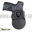 APN is an IWB and OWB holster designed for appendix carry or standard I/OWB carry on your waist. The holster is offered with an adjustment screw for accurate retention pressure and personal preference; a belt clip/J hook that allows five cant positions with a simple turn clockwise/counterclockwise; a sweat guard to buffer between the firearm and your body, to assist with better purchase of the firearm and to offer a degree of ventilation, without allowing sweat to pass to the slide of your firearm (the sweat guard is detachable and you may use the holster without it); a concealment wing (available for right-handed only) to push the grip of your firearm towards your body for less 'printing' (also removable); a rigid paddle that enables to carry the holster as OWB; and finally, the holster is ambidextrous and may be switched to left-hand use without any tools required. The APN holster is highly concealable, very lightweight, completely washable, ventilated, highly durable, it is contoured for maximum comfort, and is extremely convenient for every day concealed carry.