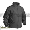 Gunfighter is a lightweight outer layer that provides maximum protection against wind, light rain and dirt thanks to a combination of Helikon-Tex® Windblocker membrane and DuPont™ Teflon® coating. Made to be used by LE/Mil units as operational apparel. The external layer stops wind, water and dirt while still getting the body moisture out. At the same time light fleece lining provides extra warmth. Foldable hood, stored in collar, can be easily adjusted through drawstrings in chest pockets and offers demanded head comfort in wet and windy conditions. Pockets setup stores essential equipment while allowing easy access in various body positions. Reinforced elbows allow freedom of movement during weapon operations. Biceps Velcro panels for ID purposes. The Gunfighter is a versatile and comfortable jacket for active duty in cold and temperate climate.