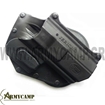 Mold injected Polymer formula. Trigger retention - active retention which holds the weapon on the trigger guard until released with the holder's forefinger.