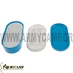 2 compartments lunch box, with separation. Stackable compartments. Supplied with a spoon and a fork. Elastic band. Materials: body, fork and spoon PP. PS lid.