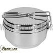 A set for the true survival enthusiast The 3-part Mess Tin is ideal for cooking in field conditions. Made of stainless steel, the mess tin is lightweight and resistant to weather elements. The thickness of the vessels has been selected to allow for easy cooking of meals directly over a fire. The Mess Tin consists of three containers. The larger pot has a capacity of 1 liter (diameter 15 cm), the smaller - 0.7 liter (diameter 13 cm). The lid, with a diameter of 15.5 cm, can also be used as a frying pan