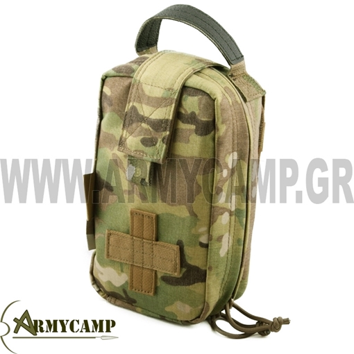 Holds a wide variety of Med Kit with Mil Spec elastic compartments and tabs that help organise kit in order of use.