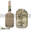 The Pouch can be mounted on Rigs or Leg Plate and its held securely in place by Mil Spec Velcro and backed up by webbing / clip closure, simply unclip the safety and either use the pouch in the traditional form or pull down hard using the handle and rip the pouch off the panel. This then allows the pouch to be placed next to the casualty and greater ease of access.