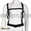 Adjustable Velcro straps for different body shapes, connected to two Polymer triangle adaptors which allows attachment to all Fobus rotating holsters & pouches