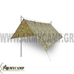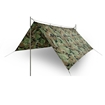 We have created a universal shelter cape for bivouac-goers. 19 attachment points provides for about an endless choice of possible configurations for all terrains and climes. To keep it lightweight, we made it out of plastic-coated ripstop fabric. Reinforced attachment points and glued seams guarantee durability and sealing. The zippered cover allows allows easy packing, even when wet. Eight ribbons allow to cinch the cover to the backpack, saving the internal capacity. The drawstring-compressed bad enclosed with the tarp allows to compact it for transport.