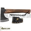 The "Viking" axe with wooden handle and leather sheath, model 27750 from MFH, is a modern tool inspired by traditional Viking designs.