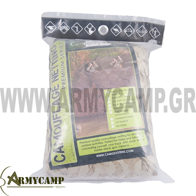 Διακοσμητικά στρατιωτικά δίχτυα σκίασης CamoSystems® υψηλής ποιότητας με αρτάνη . Αυτά τα δίχτυα έχουν σχεδιαστεί για να προσφέρουν αποτελεσματική αντηλιακή προστασία, ενώ παράλληλα δημιουργούν μια τροπική ατμόσφαιρα. Το αναστρέψιμο χρώμα και η τρισδιάστατη σχεδίαση φυλλώματος που μοιάζει με φύλλα βοηθούν να εναρμονιστεί φυσικά με το περιβάλλον .