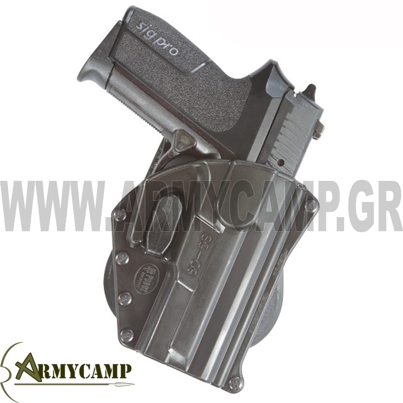 Θήκη πιστολιού Fobus SGCH – Ελαφριά,αξιόπιστη. Μείνετε ασφαλείς και γρήγοροι στο πεδίο με μια πιστολοθήκη Fobus – την αξιόπιστη επιλογή των αρχών επιβολής του νόμου, των στρατιωτικών επαγγελματιών και των πολιτών σε όλο τον κόσμο. Σχεδιασμένες με άθραυστο πολυμερές υψηλής πυκνότητας RX-18 , οι θήκες Fobus προσφέρουν εξαιρετική συγκράτηση, άνεση και δυνατότητα απόκρυψης χωρίς τ όγκο. Το σύστημα παθητικής συγκράτησης διατηρεί το πυροβόλο όπλο σας ασφαλές, ενώ επιτρέπει την ομαλή, άμεση πρόσβαση όταν το χρειάζεστε περισσότερο. Είτε για καθημερινή μεταφορά είτε για χρήση σε αυτονομία, το Fobus προσφέρει στιβαρή απόδοση σε κομψό σχεδιασμό χωρίς την ελάχιστη συντήρηση. Χαμηλό προφίλ για εξαιρετική απόκρυψη όταν χρειαστεί. Προσαρμόζεται ,ταιριάζει σε όλες τις ζώνες εξάρτυσης ανεξαρτήτου φάρδους .Η σειρά CH με δυνατότητα επιλογής με κουμπί ασφαλείας στον δείκτη . Ειδικά αξεσουάρ για ανάρτηση σε ζωνή στενή με πολιτικά ή φαρδιά ,για χαμηλή ή υψηλή προσαρμογή ή ανάρτηση σε γιλεκό μάχης molle .Μεταφέρετε με σιγουριά και ασφάλεια το πιστόλι σας καθημερινά με Fobus made in Israel. Δια βίου εγγύηση καλής λειτουργίας .