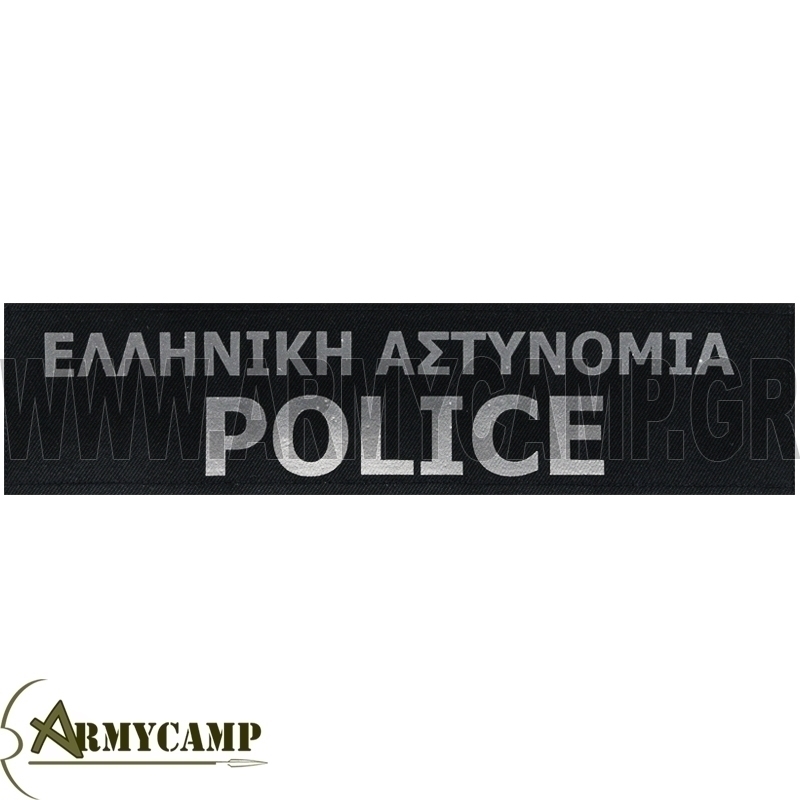 ΔΙΑΚΡΙΤΙΚΟ POLICE-ΕΛΛΗΝΙΚΗ ΑΣΤΥΝΟΜΙΑ ΑΝΑΚΛΑΣΤΙΚΟ ΠΛΑΤΗΣ ΣΕ ΜΑΥΡΟ ΦΟΝΤΟ