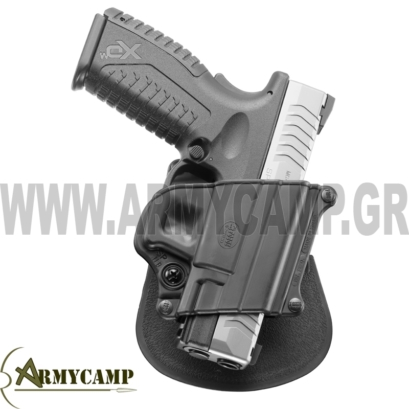 Θήκη πιστολιού Fobus XDCH – Ελαφριά,αξιόπιστη. Μείνετε ασφαλείς και γρήγοροι στο πεδίο με μια πιστολοθήκη Fobus – την αξιόπιστη επιλογή των αρχών επιβολής του νόμου, των στρατιωτικών επαγγελματιών και των πολιτών σε όλο τον κόσμο. Σχεδιασμένες με άθραυστο πολυμερές υψηλής πυκνότητας RX-18 , οι θήκες Fobus προσφέρουν εξαιρετική συγκράτηση, άνεση και δυνατότητα απόκρυψης χωρίς τ όγκο. Το σύστημα παθητικής συγκράτησης διατηρεί το πυροβόλο όπλο σας ασφαλές, ενώ επιτρέπει την ομαλή, άμεση πρόσβαση όταν το χρειάζεστε περισσότερο. Είτε για καθημερινή μεταφορά είτε για χρήση σε αυτονομία, το Fobus προσφέρει στιβαρή απόδοση σε κομψό σχεδιασμό χωρίς την ελάχιστη συντήρηση. Χαμηλό προφίλ για εξαιρετική απόκρυψη όταν χρειαστεί. Προσαρμόζεται ,ταιριάζει σε όλες τις ζώνες εξάρτυσης ανεξαρτήτου φάρδους .Η σειρά CH με δυνατότητα επιλογής με κουμπί ασφαλείας στον δείκτη . Ειδικά αξεσουάρ για ανάρτηση σε ζωνή στενή με πολιτικά ή φαρδιά ,για χαμηλή ή υψηλή προσαρμογή ή ανάρτηση σε γιλεκό μάχης molle .Μεταφέρετε με σιγουριά και ασφάλεια το πιστόλι σας καθημερινά με Fobus made in Israel. Δια βίου εγγύηση καλής λειτουργίας .