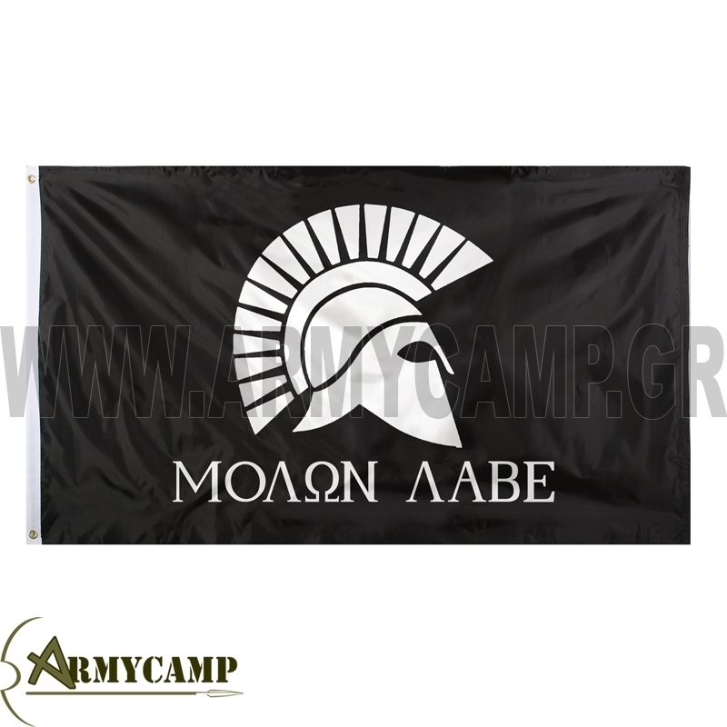 Features "Molon Labe" Text And Spartan Helmet Logo In White On The Front. Center Of The Flag