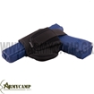 Adjustment is simple and quick by way of velcro closure. Sidearms are secured firmly by way of a moulded composite internal housing. The weapon is released by means of a push down thumb release.